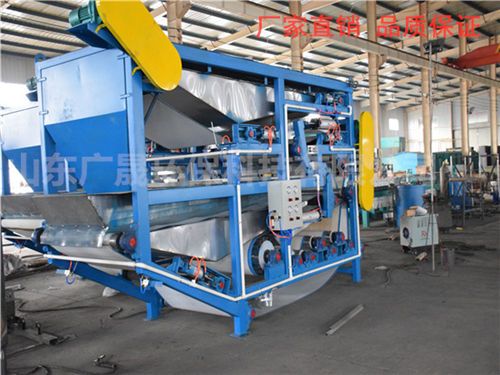 风化岩洗沙泥浆脱水机是通过两条滤带缠绕在一系列顺序排列、大小不等的辊轮上,利用滤带间的挤压和剪切作用,来脱除料浆中水分的一种压滤设备,具有着能连续作业、自动化程度高、节能、使用维护方便等优点,是一种进行污泥脱水减量化处理的理想设备。