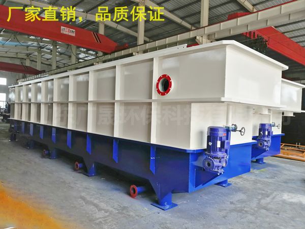 洗涤厂污水处理设备通过溶气和释放系统在水中产生大量的微细气泡,使其粘附于废水中密度与水接近的固体或液体微粒上,造成整体密度小于水的状态,并依靠浮力使其上升至水面,达到去除SS和CODcr的目的。