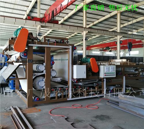 广东污泥脱水机消化吸收国外先进技术研制开发的一种脱水设备。脱水效率高,使用寿命长等特点,所采用滤带和轴承均为高品质件,作为污水处理的配套设备,可将气浮处理后的悬浮物及沉渣压滤脱水,压成泥饼,达到防治二次污染的目的。
