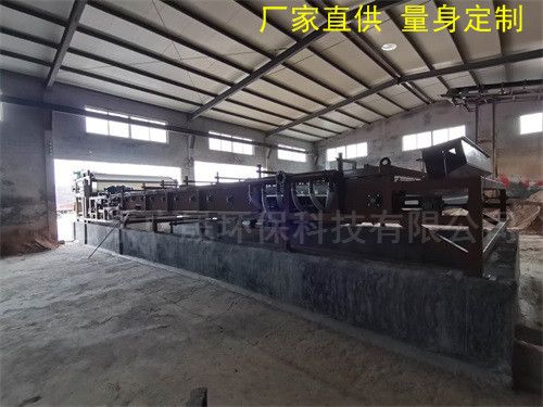 洗沙废泥脱水设备由于榨辊采用不同的布置与组合可形成很多不同的机型。具有结构简单,脱水效率高,处理量大,能耗少,噪声低,自动化程度高,可以连续作业,易于维护等优点,其成本和运行费用比板框压滤机降低 30% 以上,因此成为城市污水处理的首选设备。